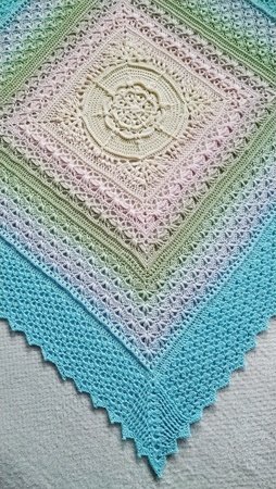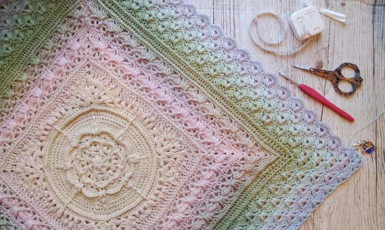 Note 2: Blocking is essential to enhance the textured, lacy patternwork of your blanket