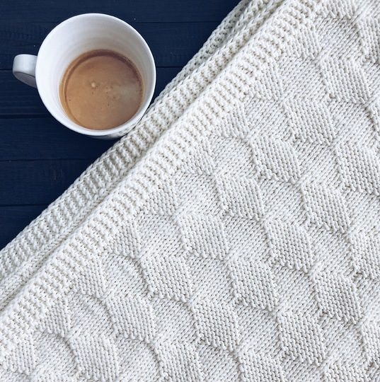GAUGE: 18 stitches to 26 rows in 10x10cm (4x4’’) in stitch pattern or stockinette, blocked. Meeting the stated gauge exactly is not critical for a blanket, but always swatch to avoid surprises.