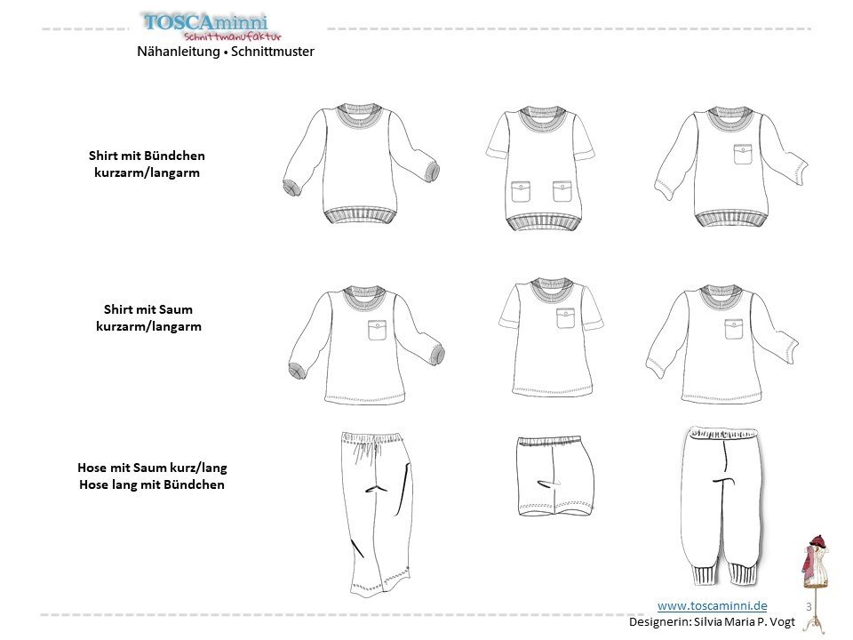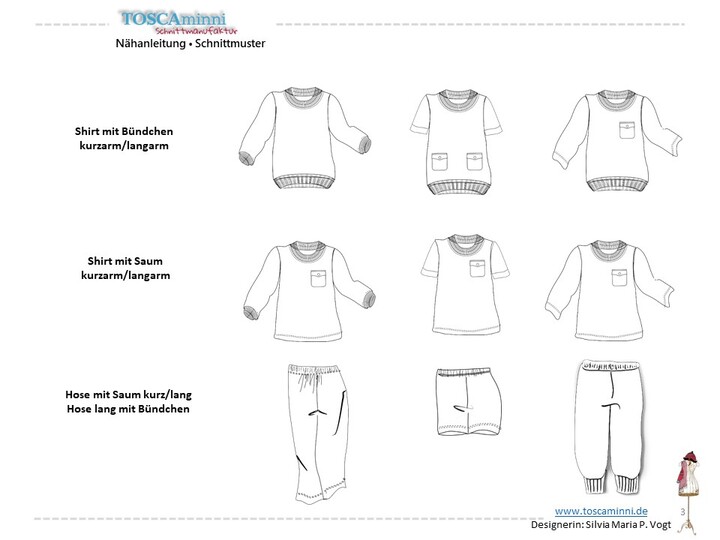 With the Anna and Rüdiger pattern you can make cute children's pyjamas - for both boys and girls. The pyjamas can be combined several times and contain the pattern with short and long trousers as well as with short and long top. Decorated with astronauts, horses and cuddly monsters, sweet dreams are guaranteed.