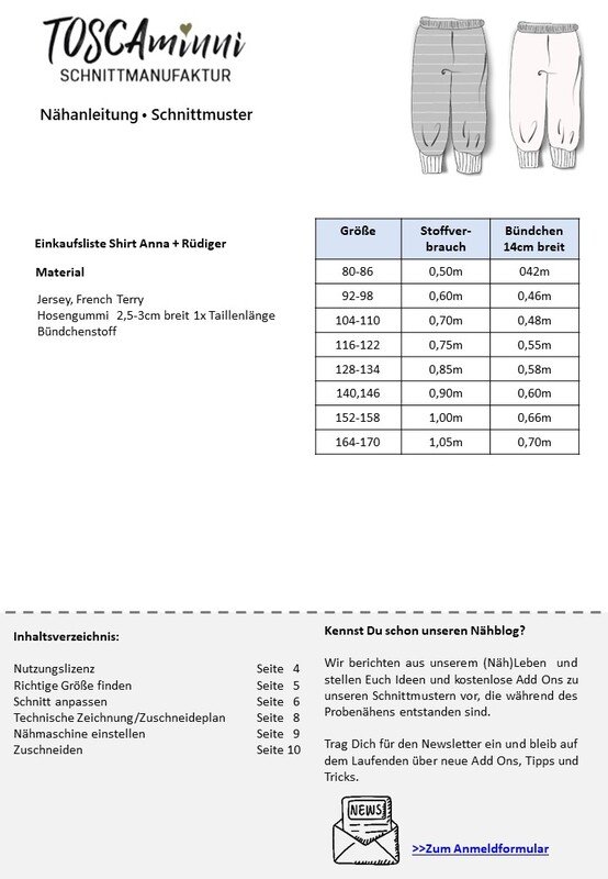 ich habe das Schnittmuster Kinder Pyjama Anna + Rüdiger für Nähanfänger gekauft...