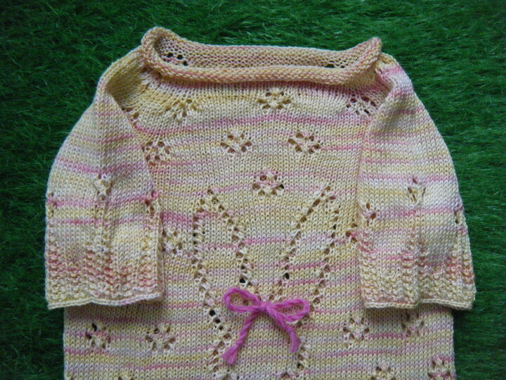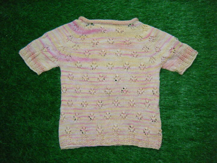 By choosing the right yarn and needle size, the jumper can be knitted from size 74 to 128.