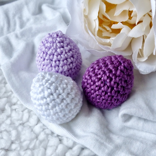 The finished Easter eggs will be about 2,5 cm - it depends a little on the used material and on the individual tightness while crocheting.