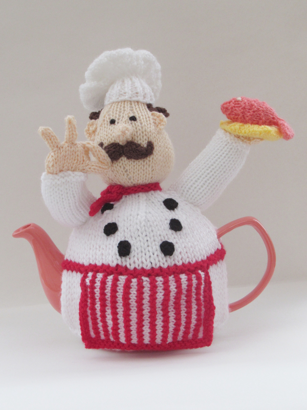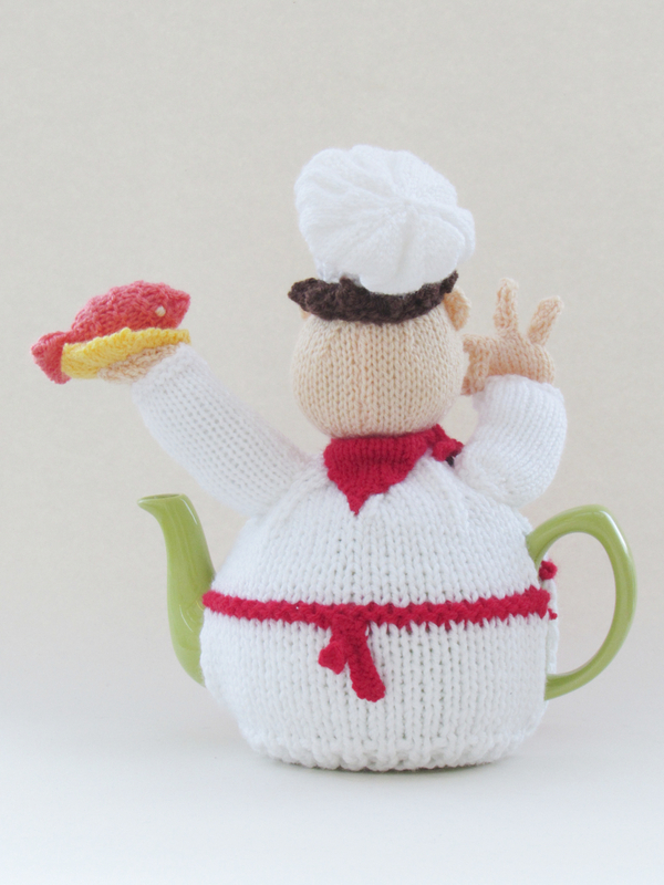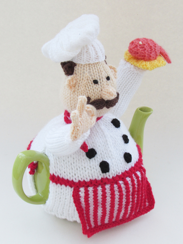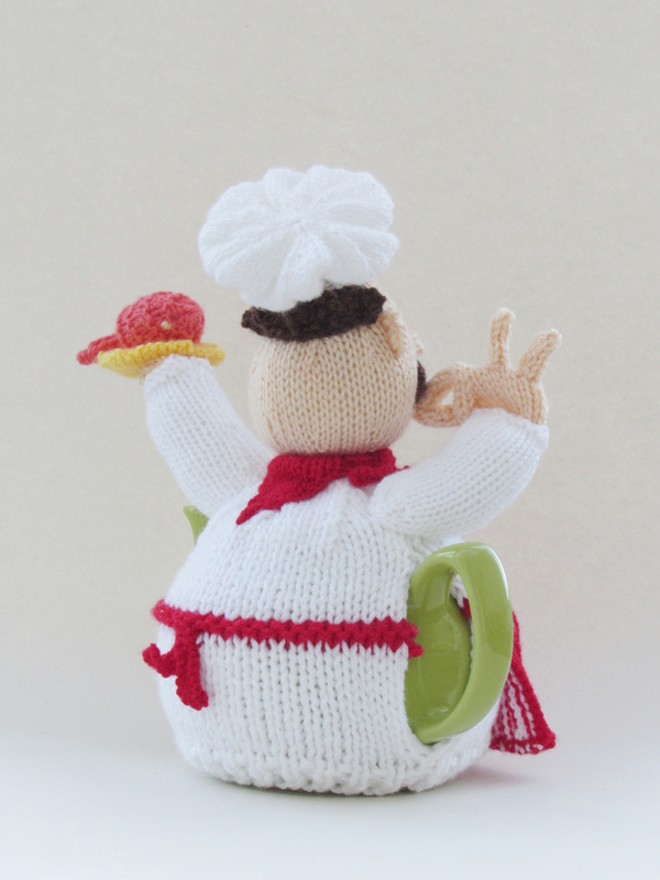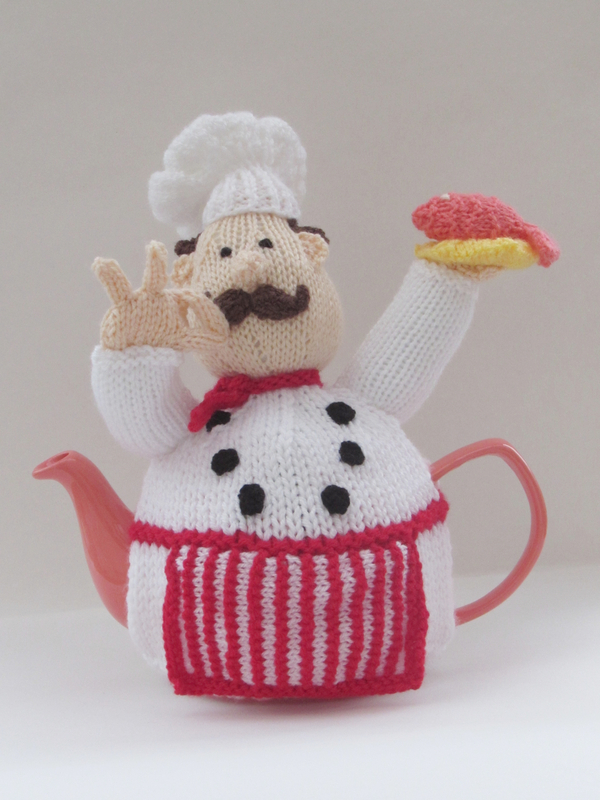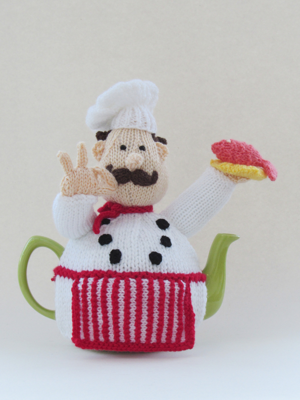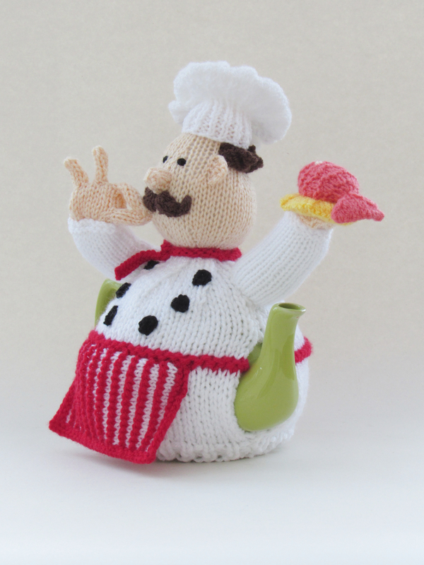 This product is the knitting pattern only; to knit your own chef tea cosy.