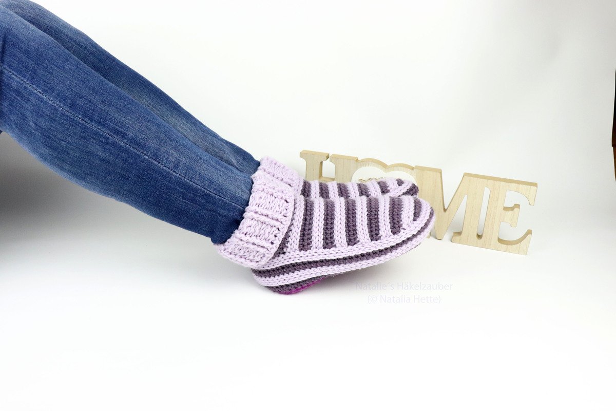 The extensive, richly illustrated PDF crochet pattern for crocheting house socks with the two-coloured pattern. You can crochet these socks for women as well as for men and children. With these house socks your feet will never freeze! Also nice as a small gift for friends and relatives.