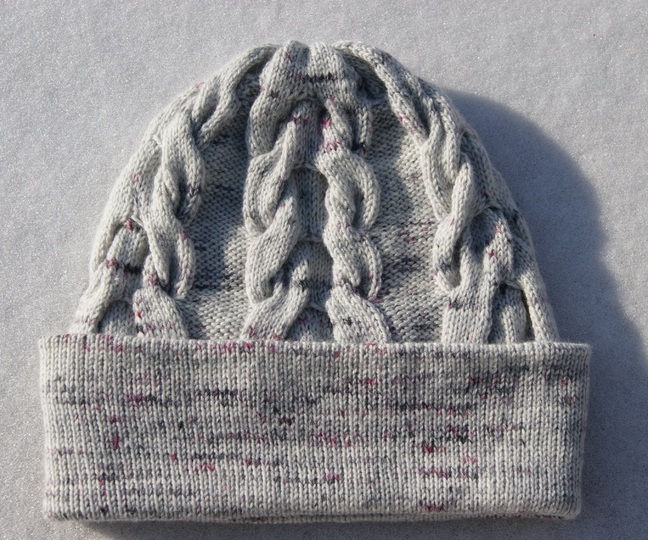Schneeverwehung is German for Snow drift. This hat is worked in the round from bottom to top with a folded brim to keep the ears warm. This is the perfect hat for cold winter days.