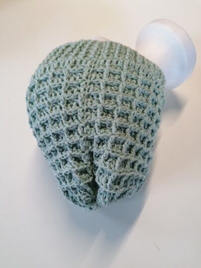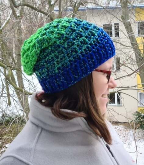 Die Mütze ist für jede Größe häkelbar und kann in der Höhe nach Wunsch gehäkelt werden.