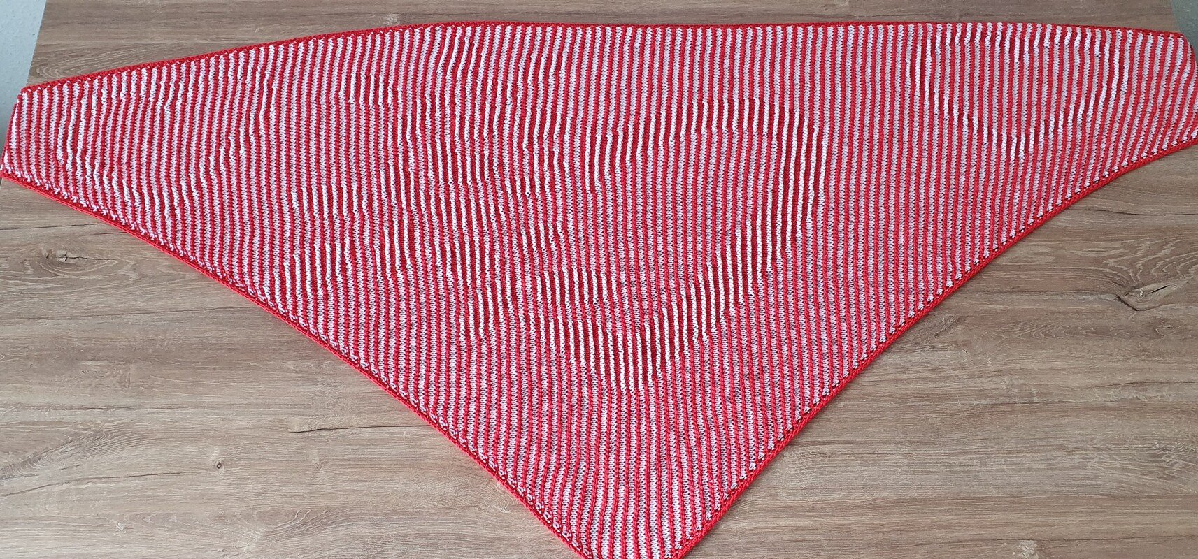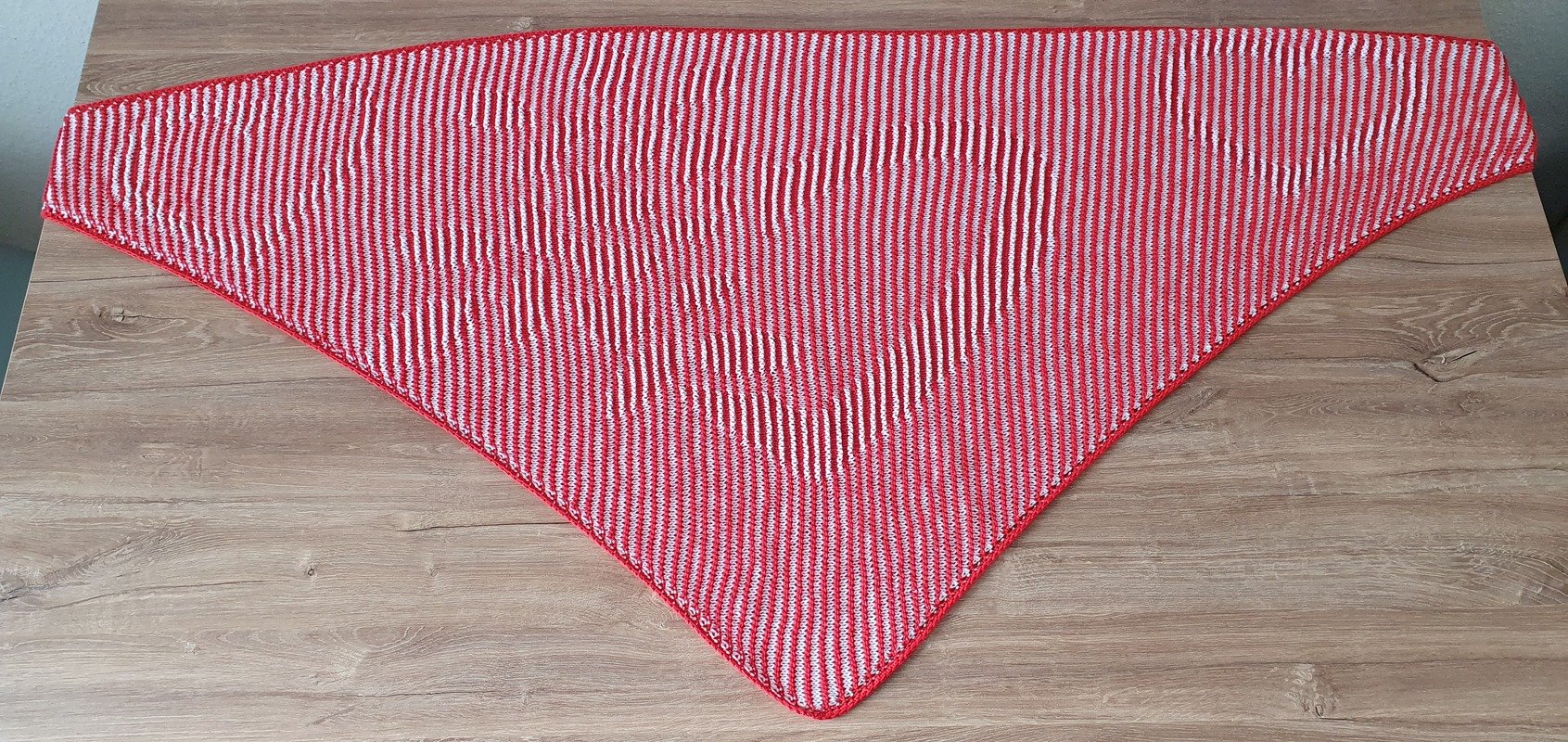 The finished shawl measures approximately 175 cm (width) x 78 cm (depth) in my version.