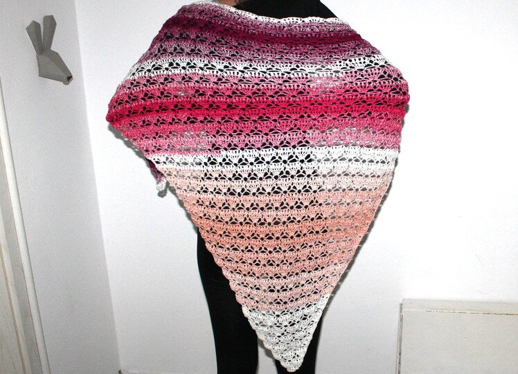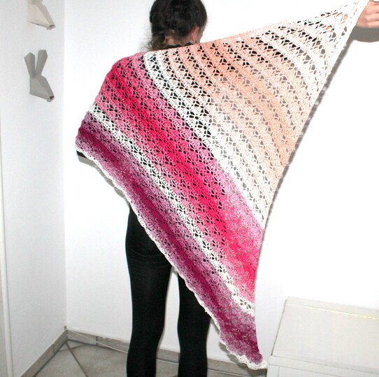 The cloth, finished crocheted about 1.70 m* 1.20 m tall, can be worn in different directions.
