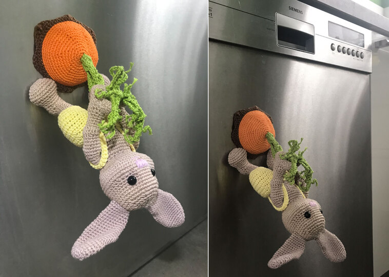 Nach dieser Anleitung könnt Ihr euch einen originellen kleinen Hasen anfertigen, der eifrig versucht eine Riesenmöhre aus der Erde zu ziehen… Der kleine Hase weiß nicht, dass die Möhre Magneten besitzt und damit fast überall hält… Aber das Häschen hat auch Magneten an den Füßen und ist daher gut ausgerüstet, um es mit der Riesenmöhre aufzunehmen… ;-)