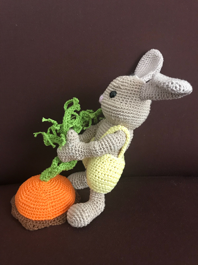 Der Hase ist von den Ohren bis zur Sohle ca. 22 cm groß.