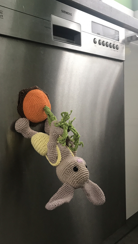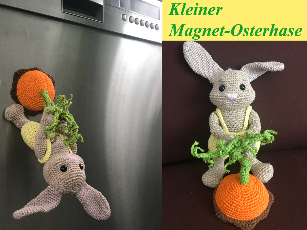 Hase mit Magneten – Dank der 6 starken Neodym-Magneten hält er an metallischen Oberflächen. Oder Ihr häkelt ihn ohne Magneten einfach nur zum Kuscheln…