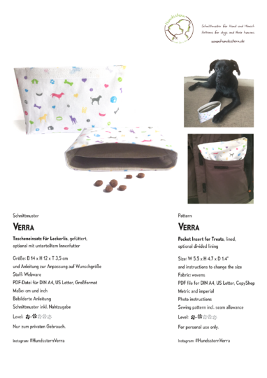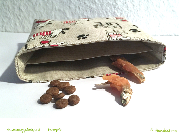 Sewn with a divided lining, it can be used to carry two different kinds of treats or treats plus poo bags, keys etc.