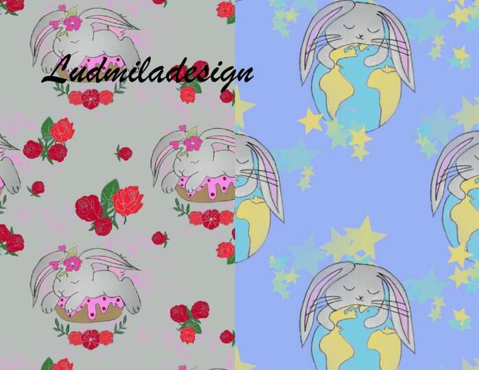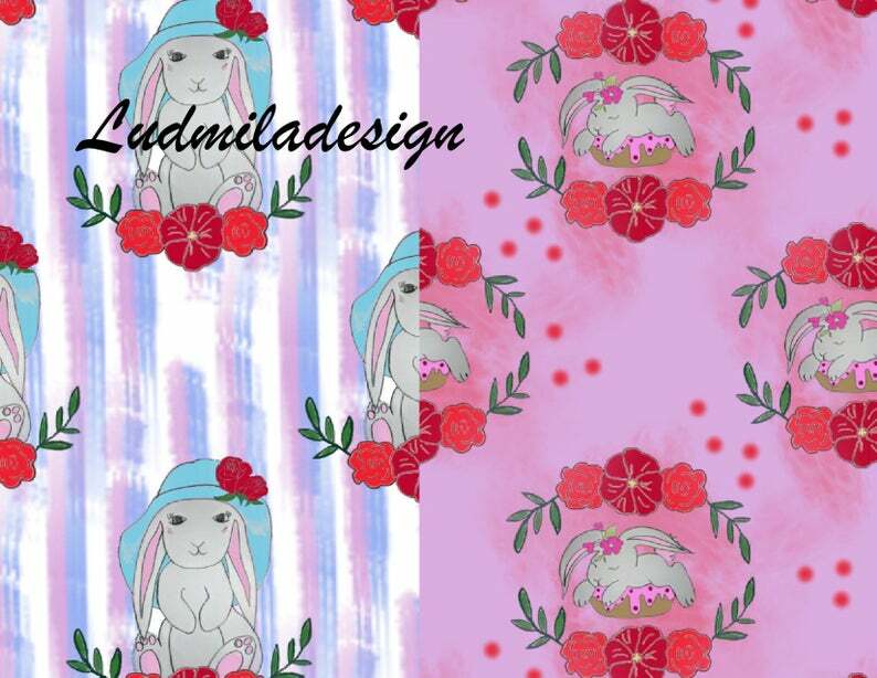 Seamless Paper, Cute Rabbits, Hares, Flowers, Roses, Digital Paper