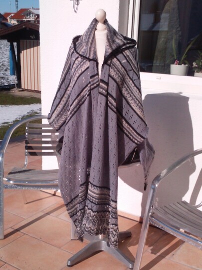 “Lulatsch” is the German slang term for a tall person with a sloppy gait. For me the perfect analogy for this XXL poncho to the “Rumschlampn” (Bavarian for: being careless and lazy) and cuddling in. It is about 120cm wide and 98cm (simple) long and actually completely oversized for my size, but I love such huge cuddly clothes.