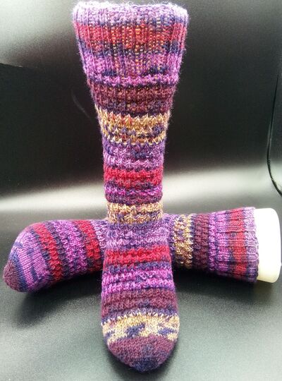 Ein tolles leichtgängiges Muster für Socken, im Winter aus den Schuhen herausschauend, welches optisch besticht und relativ einfach zu stricken ist, laut den Testern "süchtig macht" weiter zu stricken. Die Socken können gerne als Kurzsöckchen, Sneaker oder normale Socken gestrickt werden. Das Muster ist auch absolut Herrensocken tauglich.