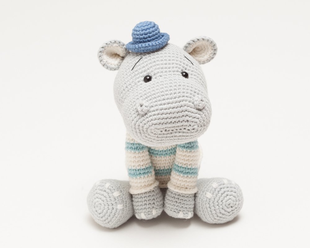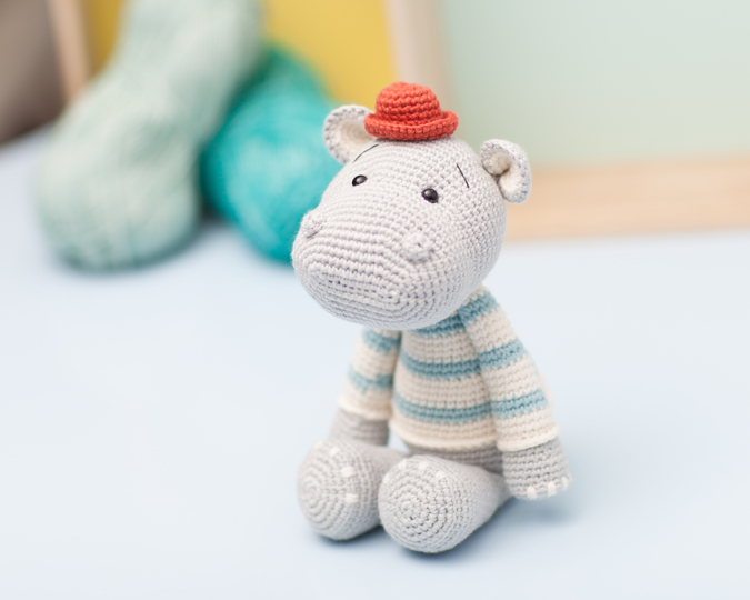 If you use the yarn and hook indicated, the hippo will be about 14.5 cm (5.7 inches) tall sitting. You can make it bigger or smaller using another type of yarn but, please, adapt the crochet hook and safety eyes accordingly.
