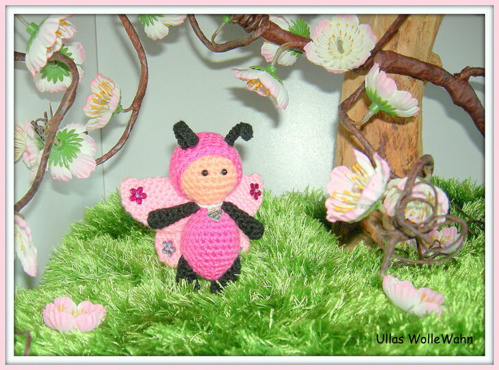 Pummelchen als Schmetterling wird, bei Verwendung von Schachenmayr Bravo und Nadelstärke 2, ca. 11 cm groß.