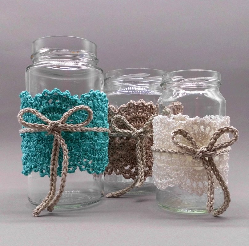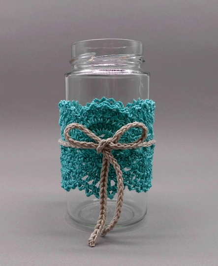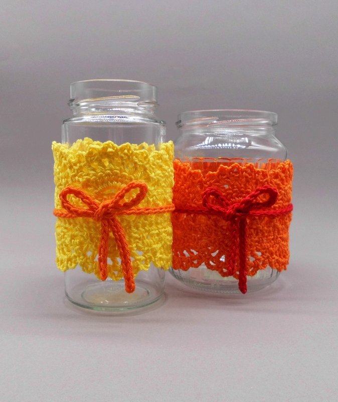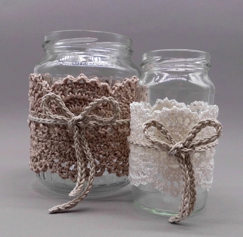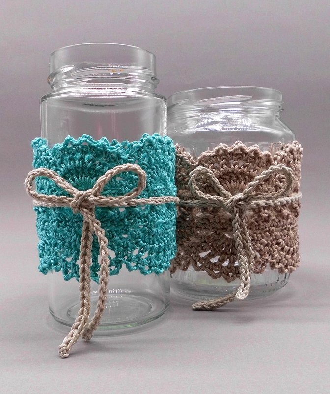 Can be crocheted in all sizes, for all used jars/screw jars (e.g. jam jars, fruit jars, vegetable jars, sausage jars).