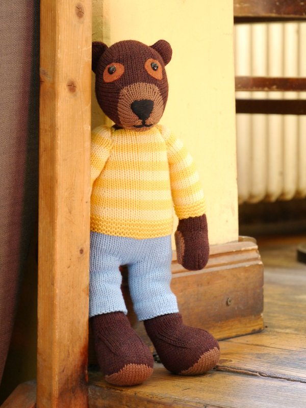 You get a detailed step-for-step instruction for the bear and the bee with a shipload of charts ans photos. He should be manageable for beginners with some patience who want to learn more about their new hobby.