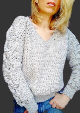 V-Neck Cable Sweater Pattern is coming in 2 sizes; S/M and L/XL