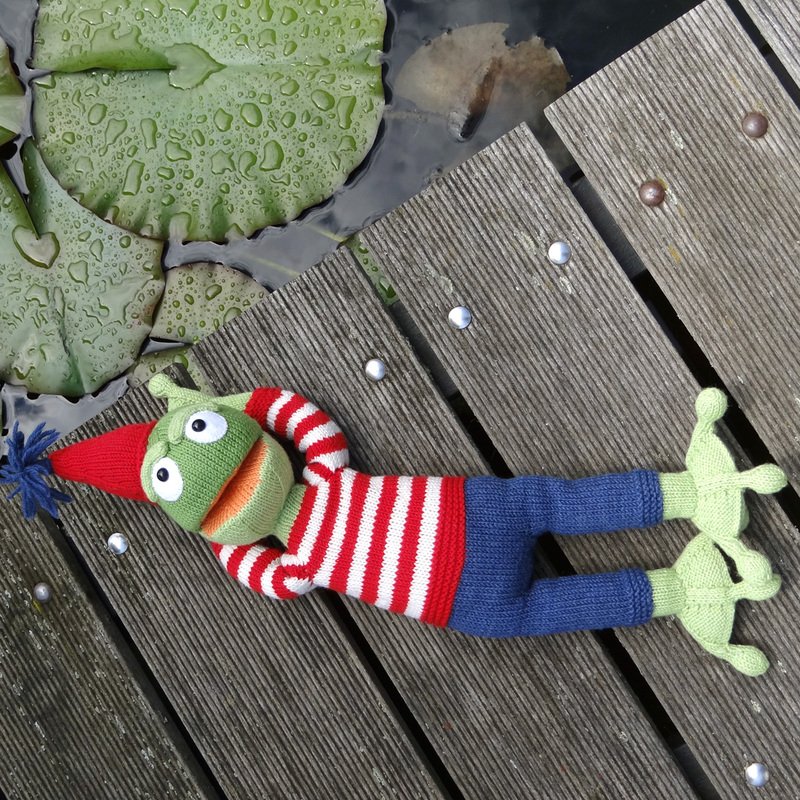 Nobody can deny Poldi’s charme, frequently used to scrounge kisses that his distant cousin, the Frog King, was actually entiteled to, but be warned: In spite of his funny and amiable nature he is quite a hopeless know-it-all, who will irritate you with unwanted advice and opinions ranging from unique to straightforward weird on any, really any given subject. Once you decide to knit Poldi, be aware that you will create a loudmouth croaking from morning to evening. Anyway, you will still love him. Everybody does.