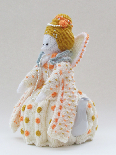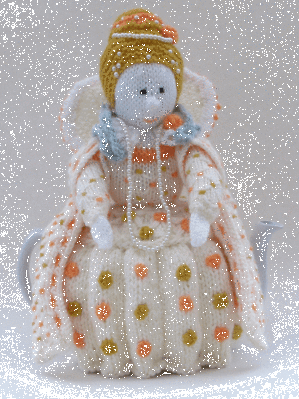The tea cosy pattern of the Virgin Queen also comes with a pattern for legs and bloomers, in case you'd like to make her as a doll.