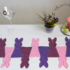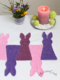 The table runner consists of several individual easter bunnys. Thanks to their variable arrangement, you can not only develop table runners, but also cloths or coasters according to your wishes. You can also use a single bunny as a creative application.