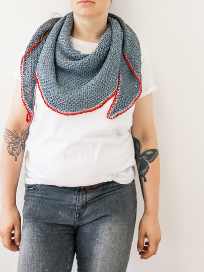 Contrast color: (Itoyarns 'Gima 8.5)' 10g (Red) + Any Accent yarn 10g (Silver)