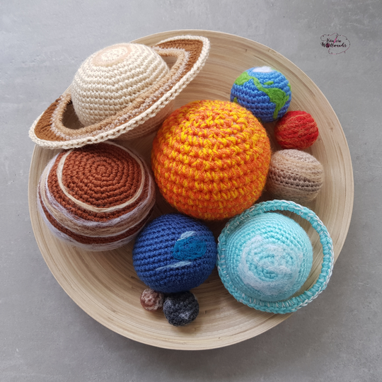 Mithilfe dieser Häkelanleitung kannst du die dein eigenes Sonnensystem häkeln.