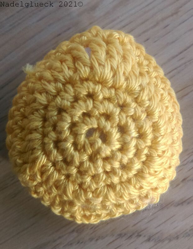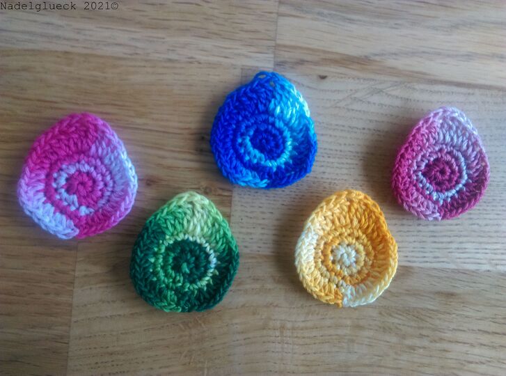 Verwendest du Baumwollgarn mit einer LL von 125m / 50 g, so werden die Eier ca. 5 x 4 cm groß.