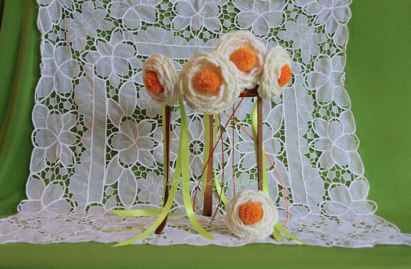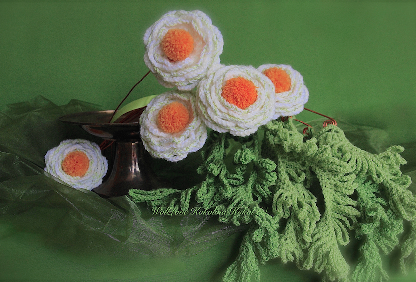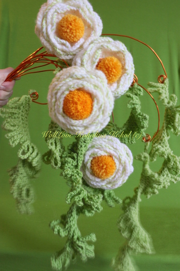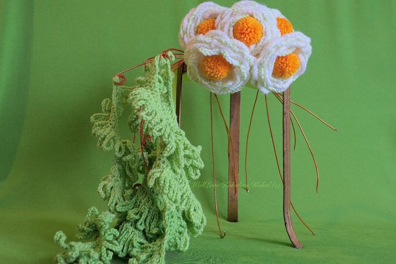 für die Blütenblätter ( LM Bögen ) wird die Wolle doppelt genommen