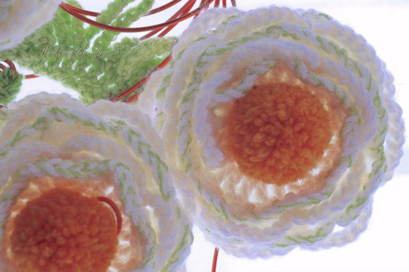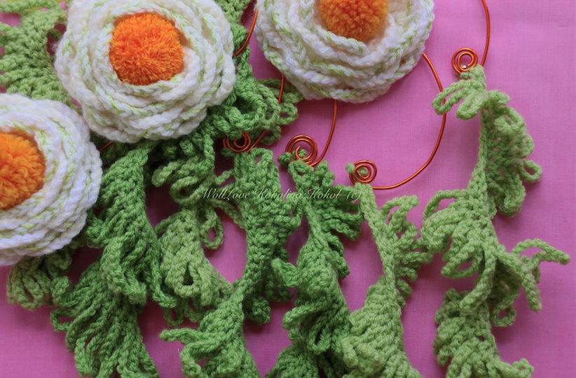 Nur mit Luftmaschen + Festen Maschen + Einfachen Stäbchen / + Bommeln wickeln kannst du diese …. mit an sich wenig Zeitaufwand und mit zB Reste Material mit meiner