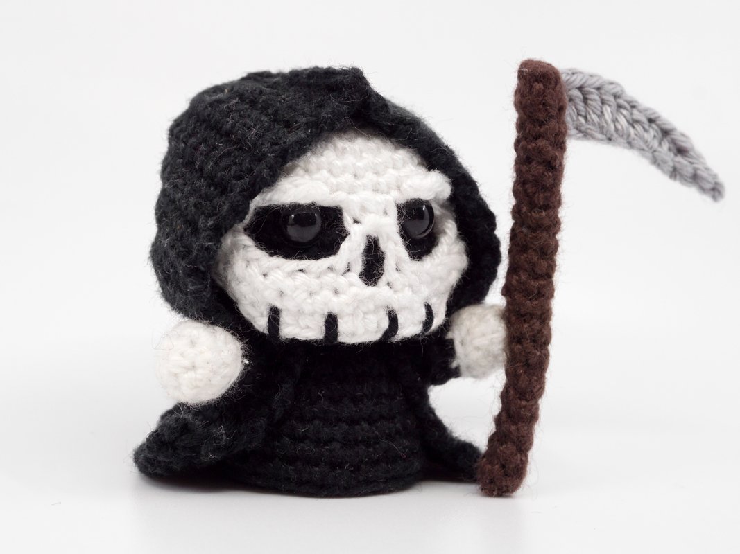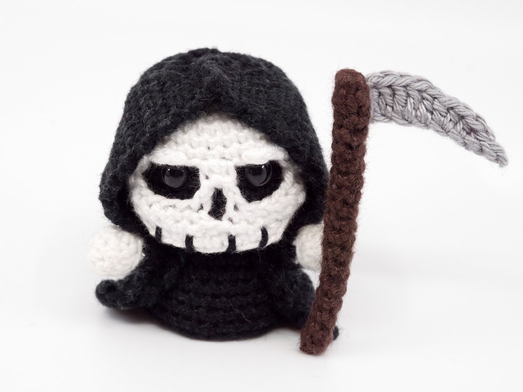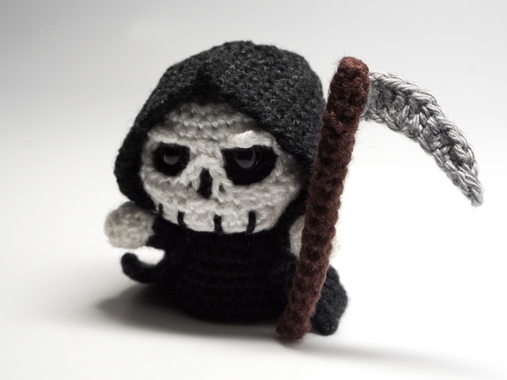 This little Grim Reaper can be crocheted relatively quickly and is perfect as a decorative figurine, gift or key chain.