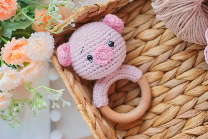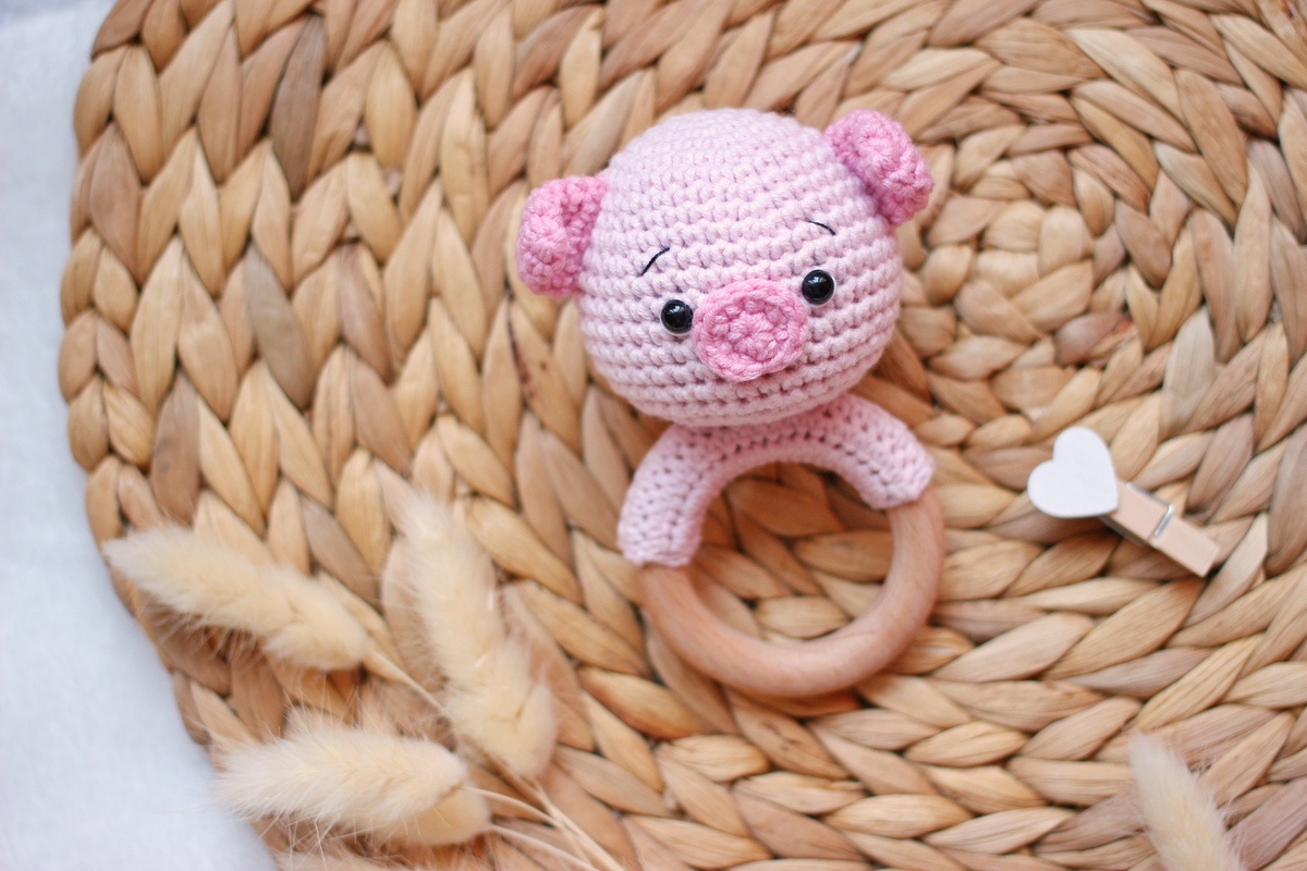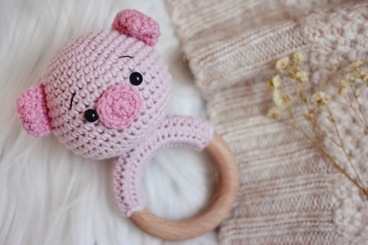 ABOUT THE CROCHET PATTERN TEETHING RING FARM ANIMAL PIGGY