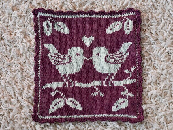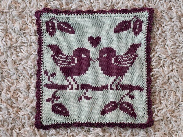 With a gauge 27 sts x 40 rows = 10 x 10 cm (4โ x 4โ), size of the finished cloth is approx. 23 cm x 23 cm