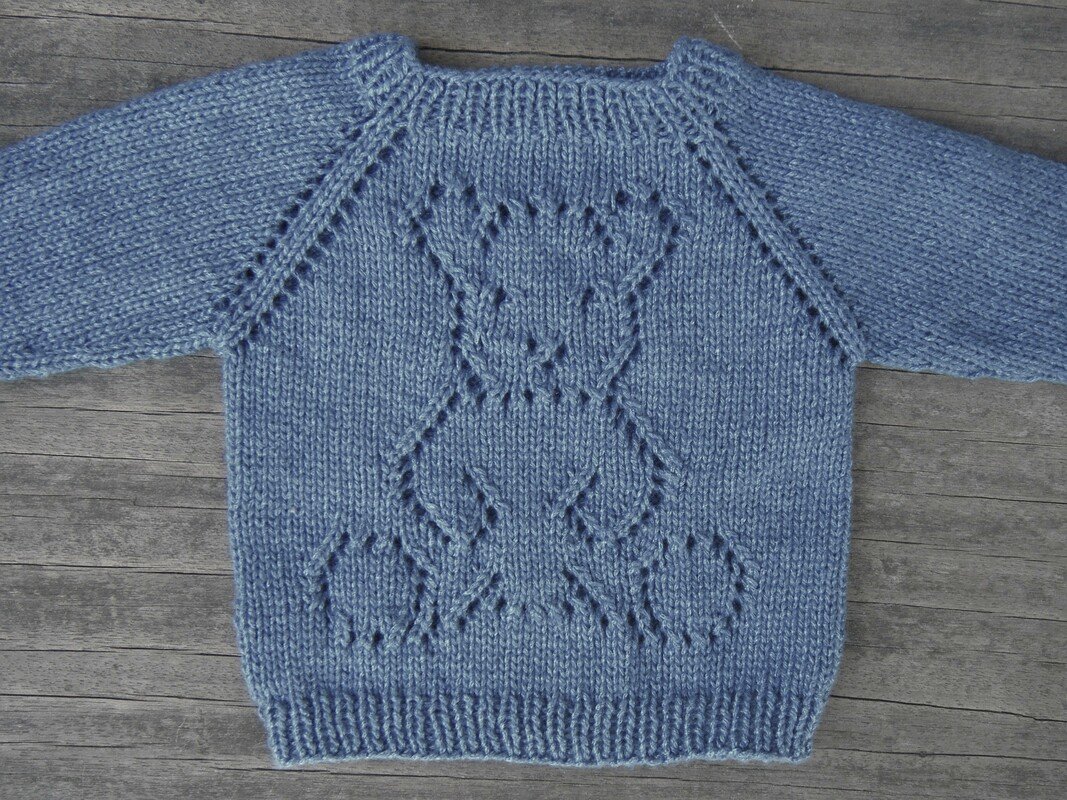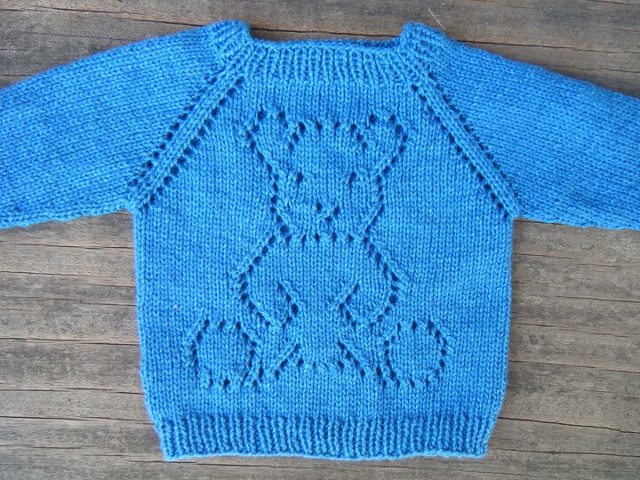 The instructions consist charts (drawn stitch by stitch, NOT written out) and are included in the download in sizes from newborn to 6 year old.