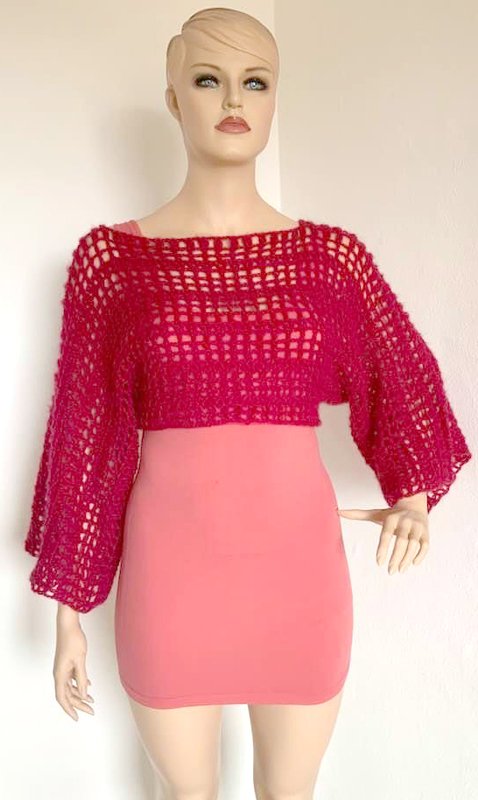 Du könntest den kurzen Pulli auch nach untern noch länger häkeln ...dann brauchst Du aber mehr Wolle