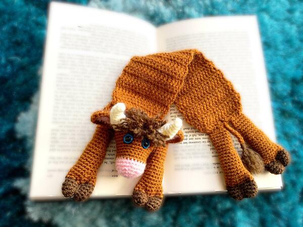 Cute crocheted highland cattle bookmark, suitable for beginners. The detailed step-by-step instructions can be easily followed without any special previous knowledge, within a short time you can enjoy the bookmark.