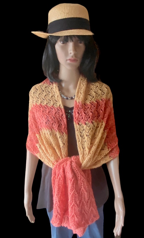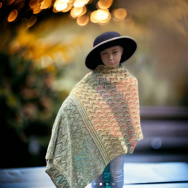 Das Tuch Anlis Frühlingsbote habe ich für Rübezahl-Spinnereien gemacht. Es ist mit 300g wahnsinnig weichen Alpaca - Seide-Cashmere Garn mit einer LL von 400m auf 100g gestrickt.