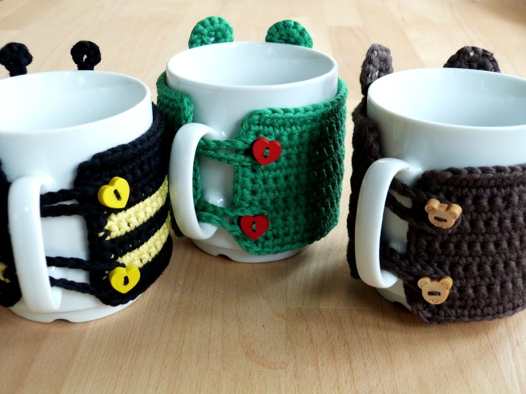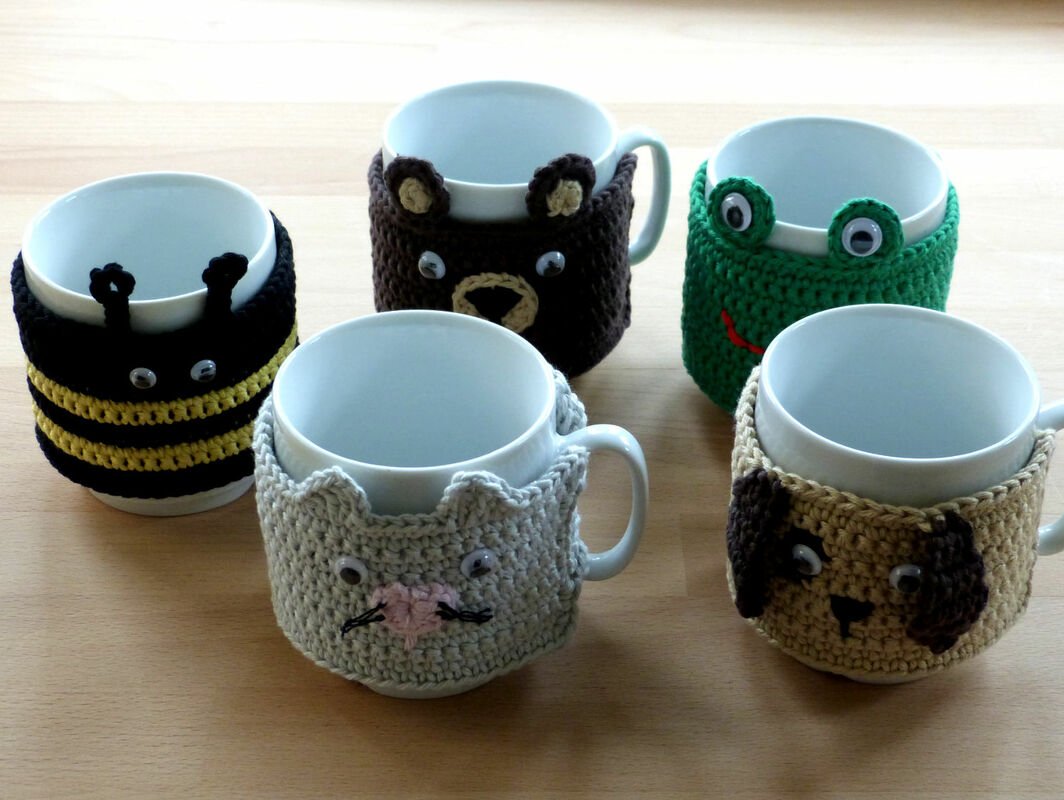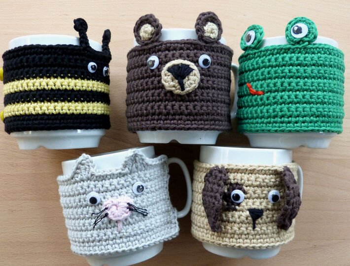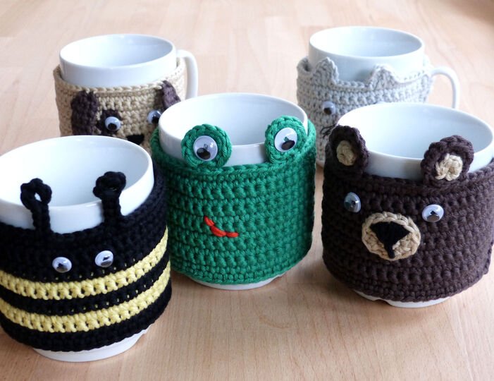 This tutorial will accompany you step by step to receive a decorative mug cozy with the shape of one of 5 animals: bear, dog, cat, frog or bee. Detailed pictures will help you to understand the production process.