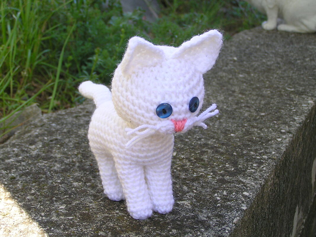 Crochet white kitty is a nice toy and perfect gift for your little boys and girls.