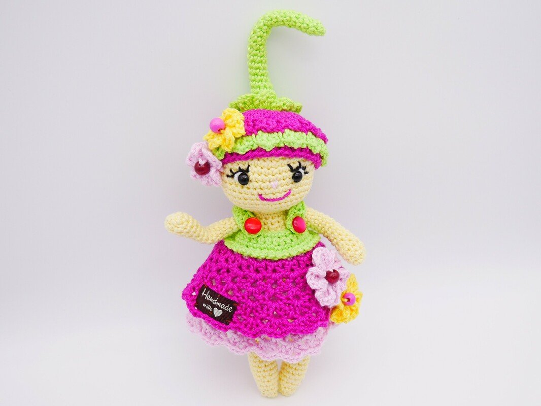 Du erhältst eine ausführliche Häkelanleitung für dieses süße Kirschblüten Püppchen