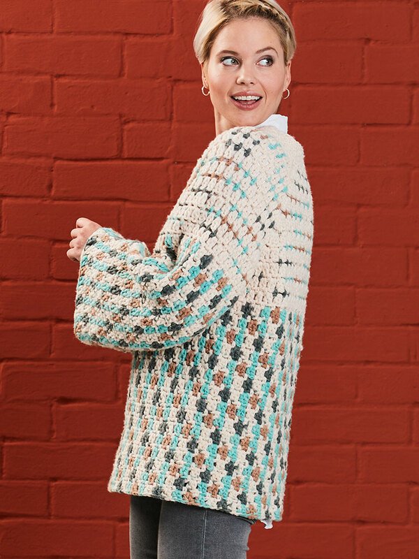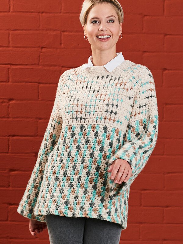 So einen tollen Pulli kannst auch Du haben. Es ist ganz einfach, Garn kaufen, Häkelnadel rausholen und anfangen.
