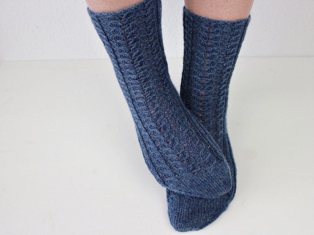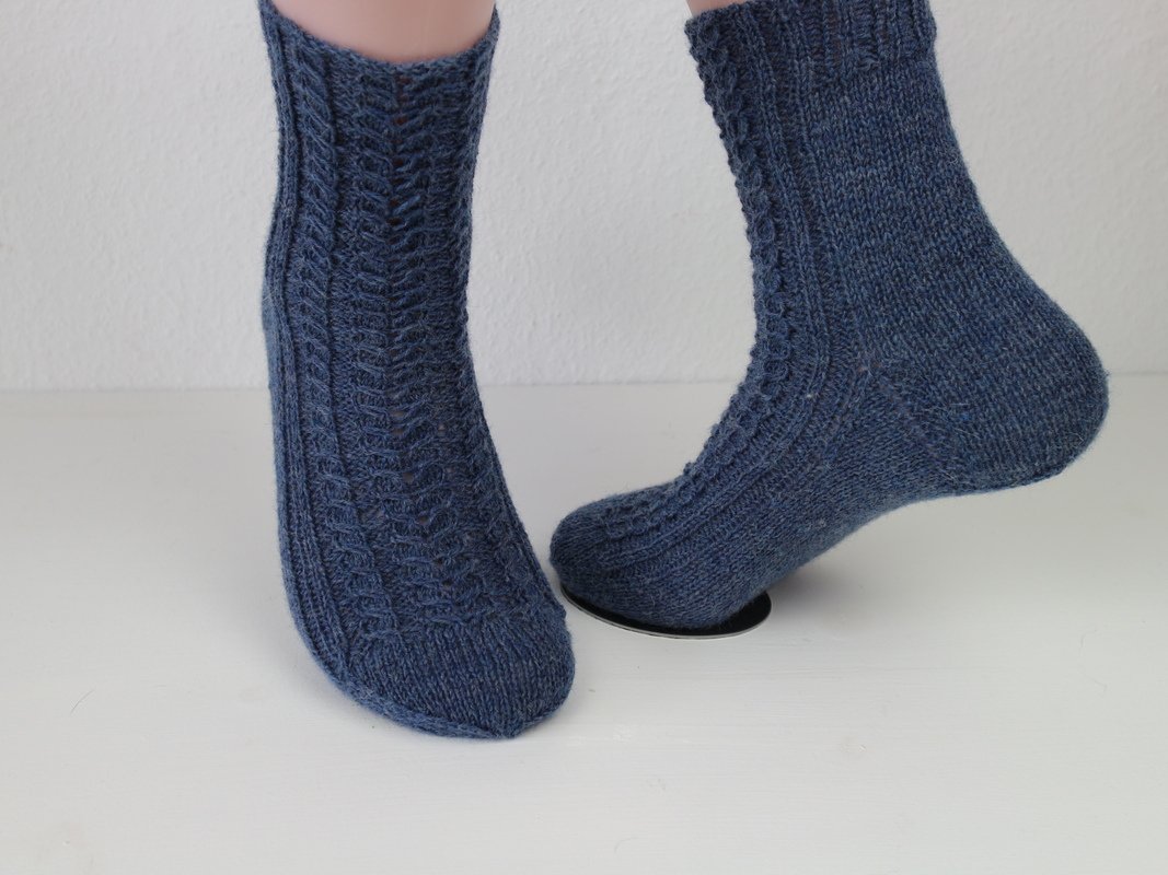 You can find a chart for the cable pattern, a list of abbreviasions and a detailed description for making these socks.