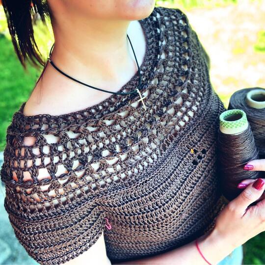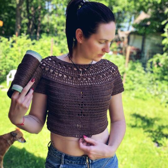 • Recommended yarn Paintbox Yarns Cotton DK, weight DK / Medium, Color – Coffee Bean, in 50 gr / 125 m; 1.8 oz/ 137 yds