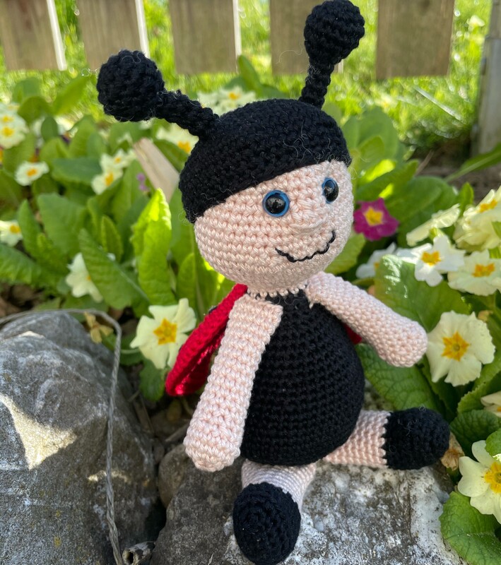 In dieser Anleitung zeige ich dir Schritt für Schritt wie du zu diesem tollen Marienkäfer kommst. Der Kopf und der Körper werden in einem Schritt gehäkelt, die restlichen Körperteile werden an den Körper bzw. den Kopf genäht. Die Anleitung enthält viele Bilder zur Unterstützung.