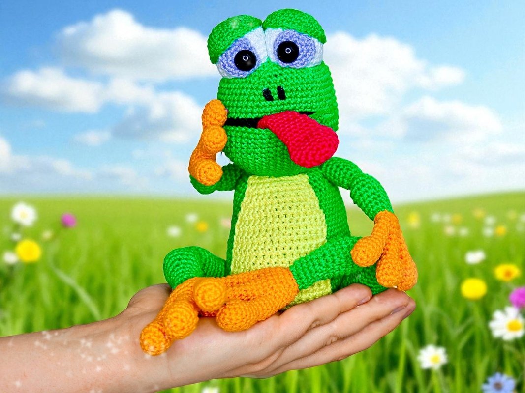 You are looking for a cute frog? Forest frog, pond frog, frog prince or weather frog, you can individually customize the frog. My frog is sitting on a lily pad and is waiting to be crocheted by you. Arms and legs can be moved freely, he can sit, lie, cross your arms or sit cross-legged - everything is possible. I wish you a lot of fun crocheting.
