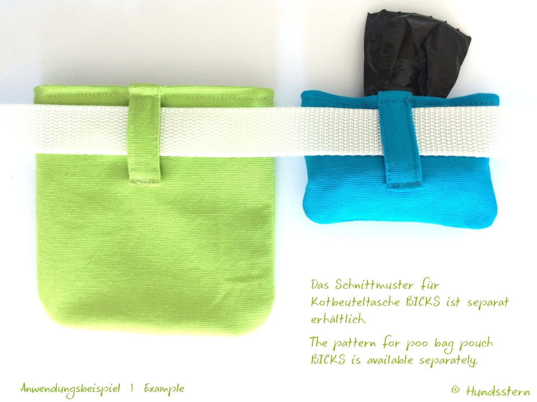 The pattern and instructions for the matching poo bag pouch BICKS is available here: https://www.crazypatterns.net/en/items/71590/bicks-poo-bag-pouch-with-lining-sewing-pattern