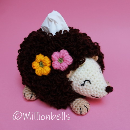This PDF crochet pattern will guide you to crochet a hedgehog tissue holder as shown in pictures, made using soft acrylic yarn (DK / 8 ply) and crochet hook J (6 mm).
