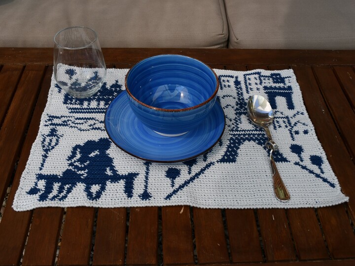 This placemat is worked in the Tapestry Crochet Technique. This is quite easy, fun to do, and it is explained in detail in the pattern.